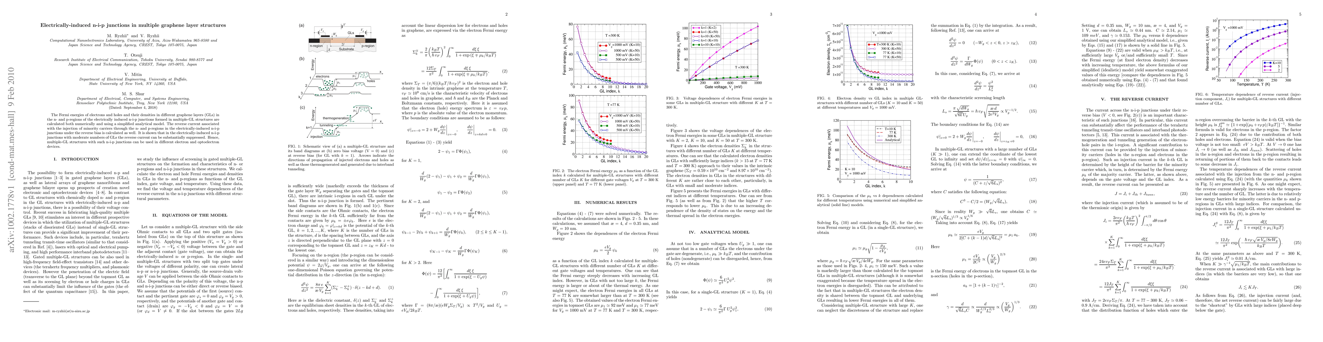 This paper investigates electrically-induced n-i-p junctions in multiple graphene layer structures, showing that reverse current can be significantly suppressed, thus suggesting potential applications in electron and optoelectronic devices. Analytical and numerical models reveal the behavior of Fermi energies and densities in various graphene layers.