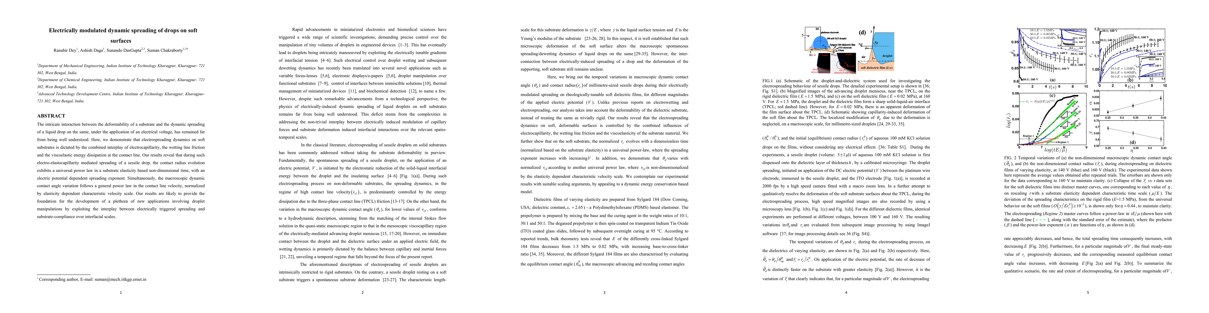 Researchers investigate how an electric voltage affects the spreading of liquid drops on soft surfaces, finding that it's governed by electrocapillarity, friction, and energy dissipation at the contact line.