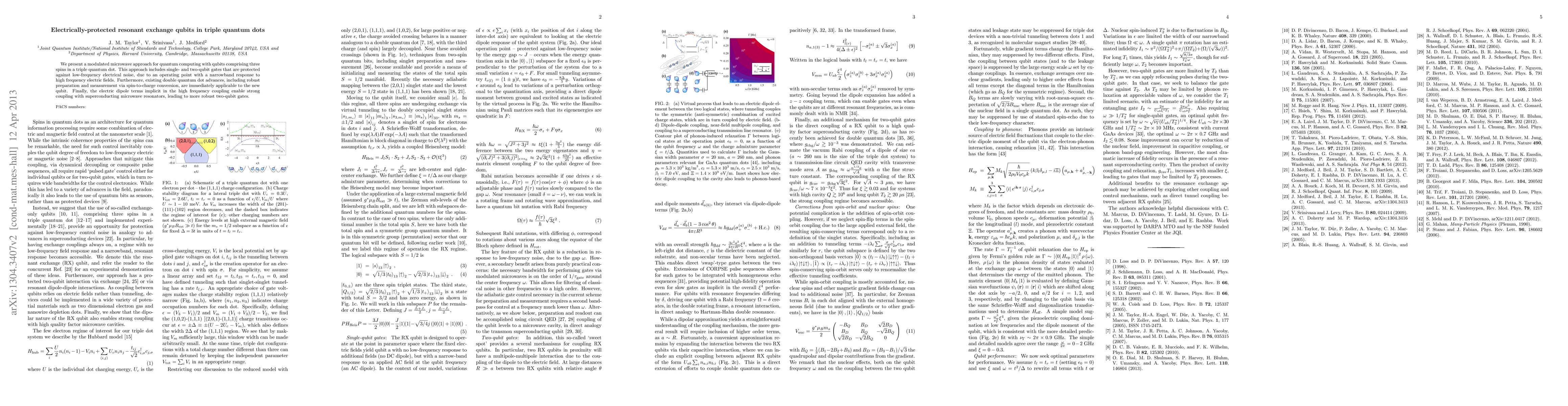 We present a modulated microwave approach for quantum computing with qubits comprising three spins in a triple quantum dot. This approach includes single- and two-qubit gates that are protected against low-frequency electrical noise, due to an operating point with a narrowband response to high frequency electric fields. Furthermore, existing double quantum dot advances, including robust preparation and measurement via spin-to-charge conversion, are immediately applicable to the new qubit. Finally, the electric dipole terms implicit in the high frequency coupling enable strong coupling with superconducting microwave resonators, leading to more robust two-qubit gates.