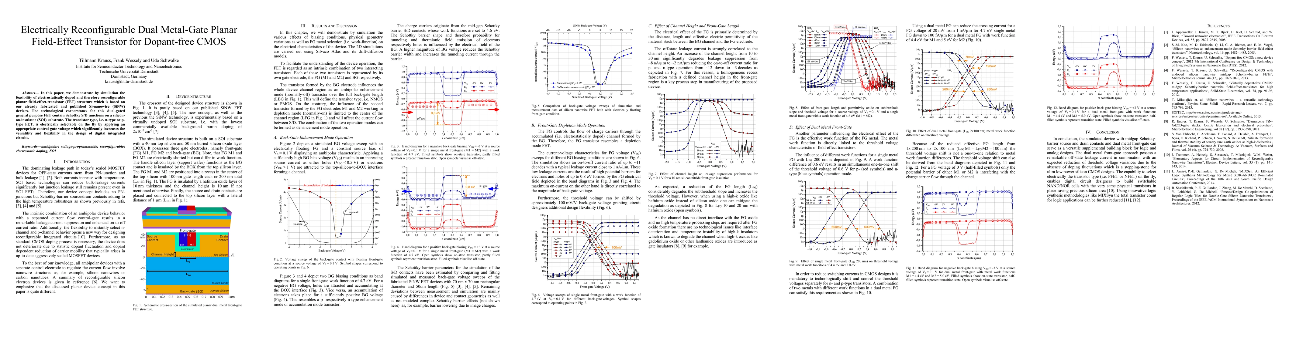 This paper presents a simulation demonstrating a reconfigurable planar FET based on SiNW technology with dual metal gates and Schottky source/drain junctions. The device allows on-the-fly switching between n-type and p-type FETs by electrostatic doping, enhancing flexibility in CMOS design.