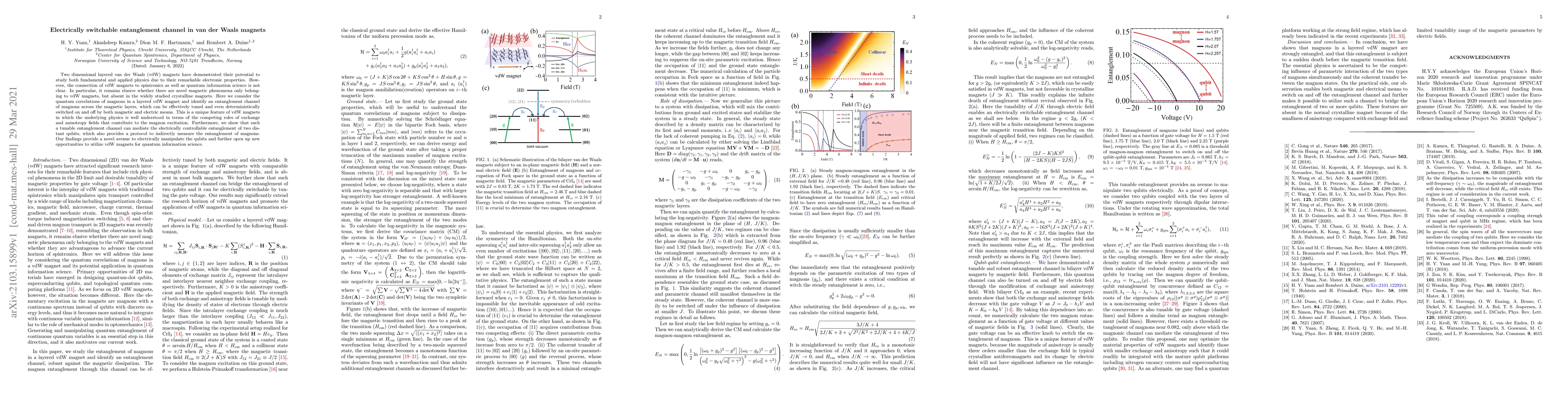 This paper explores the unique electrically switchable entanglement channel in layered van der Waals magnets, demonstrating tunable and controllable magnon entanglement that can mediate qubit entanglement, thus offering new pathways for quantum information science applications.