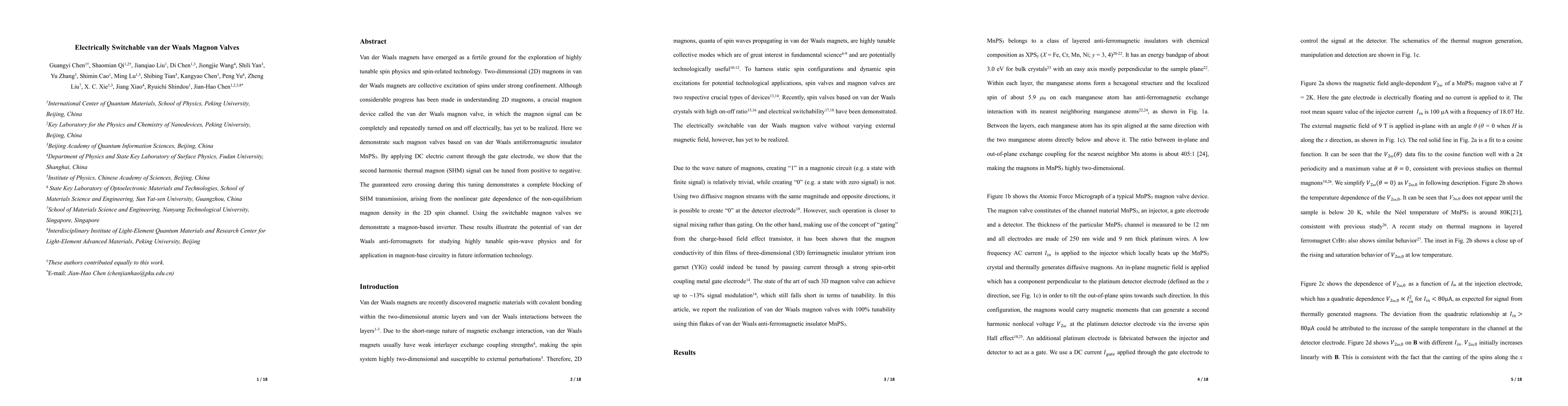 Van der Waals magnets have emerged as a fertile ground for the exploration of highly tunable spin physics and spin-related technology. Two-dimensional (2D) magnons in van der Waals magnets are collective excitation of spins under strong confinement. Although considerable progress has been made in understanding 2D magnons, a crucial magnon device called the van der Waals magnon valve, in which the magnon signal can be completely and repeatedly turned on and off electrically, has yet to be realized. Here we demonstrate such magnon valves based on van der Waals antiferromagnetic insulator MnPS3. By applying DC electric current through the gate electrode, we show that the second harmonic thermal magnon (SHM) signal can be tuned from positive to negative. The guaranteed zero crossing during this tuning demonstrates a complete blocking of SHM transmission, arising from the nonlinear gate dependence of the non-equilibrium magnon density in the 2D spin channel. Using the switchable magnon valves we demonstrate a magnon-based inverter. These results illustrate the potential of van der Waals anti-ferromagnets for studying highly tunable spin-wave physics and for application in magnon-base circuitry in future information technology.