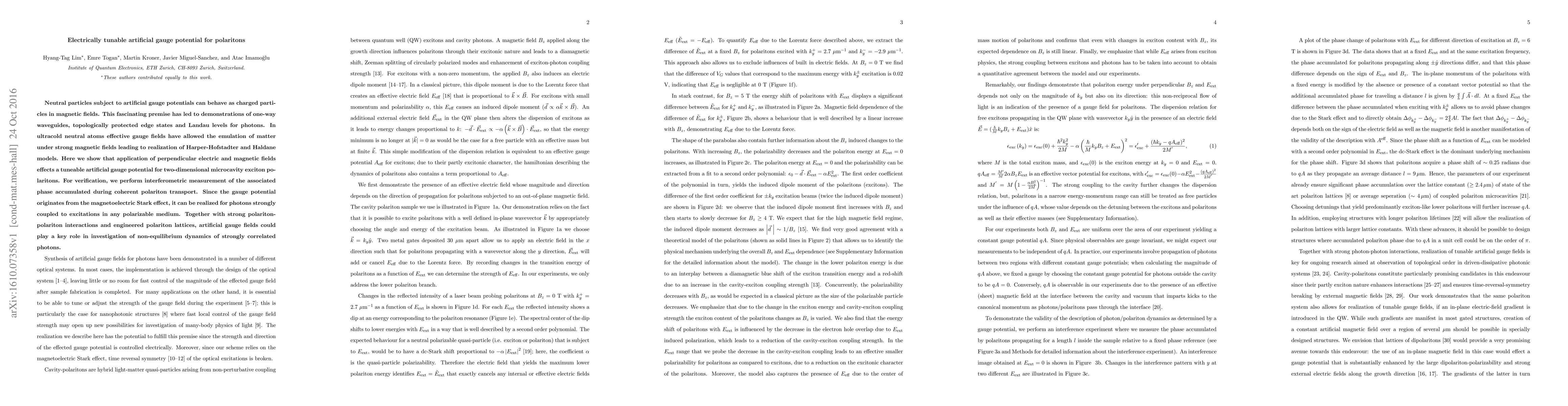 This paper demonstrates electrically tunable artificial gauge potentials for exciton polaritons in microcavities, achieved via perpendicular electric and magnetic fields, enabling coherent transport studies. The gauge potential, originating from the magnetoelectric Stark effect, opens avenues for exploring non-equilibrium dynamics in strongly correlated photons.