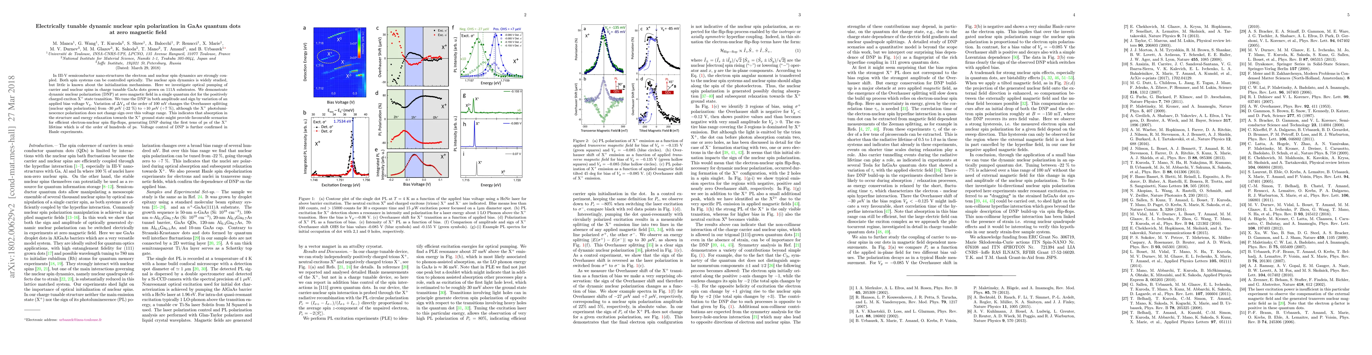 This study demonstrates electrically tunable dynamic nuclear polarization in GaAs quantum dots at zero magnetic field, showing that variation of the applied gate voltage can alter nuclear spin polarization, indicating efficient electron-nuclear spin interactions during the exciton's lifetime. Voltage control of nuclear spin polarization is confirmed through Hanle experiments.