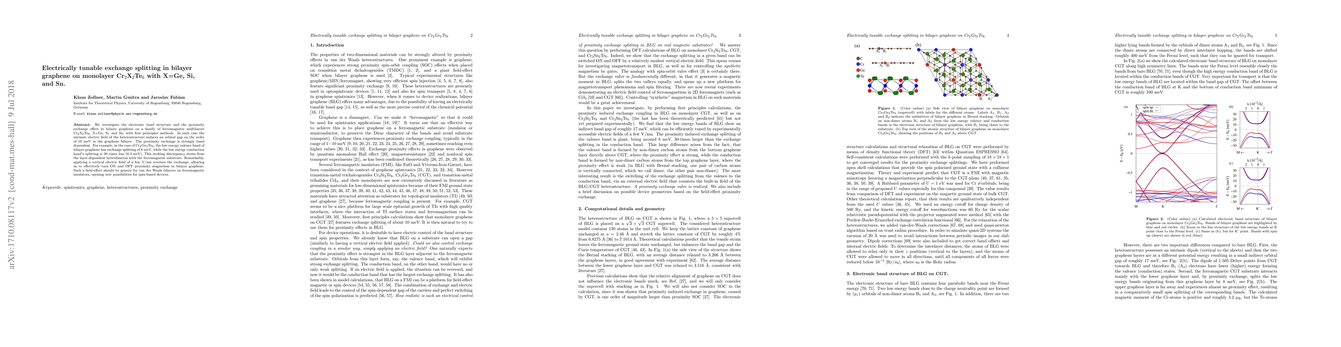 This study explores the tunable electronic properties of bilayer graphene on ferromagnetic Cr$_2$X$_2$Te$_6$ (X=Ge, Si, Sn) using first principles methods, revealing significant exchange splitting differences across graphene bands due to substrate hybridization. An applied electric field can reverse the exchange splitting, enabling ON/OFF control of magnetism in graphene, with implications for spin-based device applications.