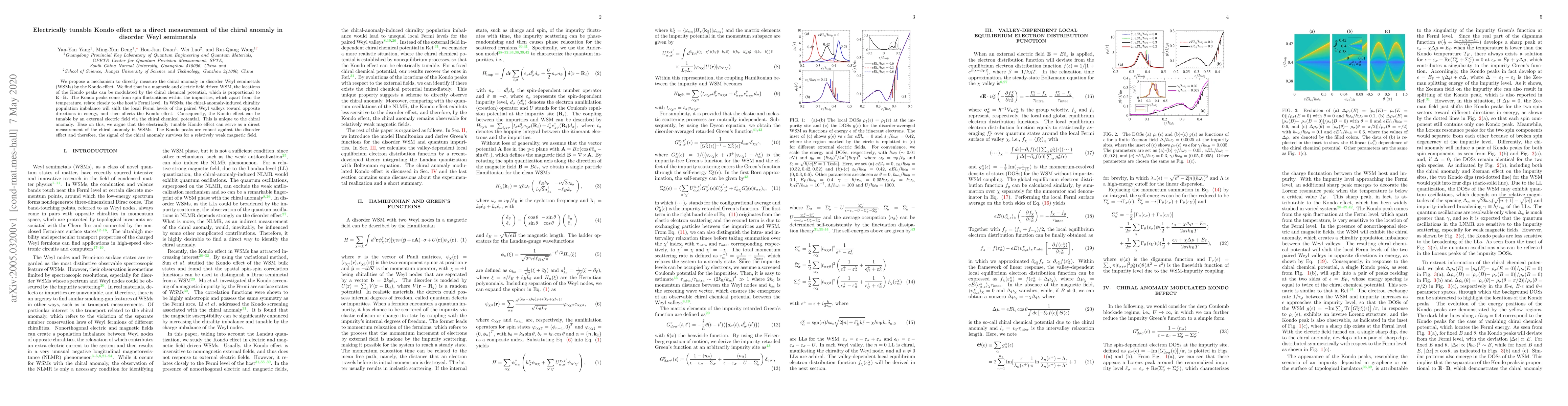 This paper proposes a method to directly measure the chiral anomaly in disorder Weyl semimetals using the electrically tunable Kondo effect, demonstrating that the Kondo peaks can be modulated by the chiral chemical potential, thus providing a unique signature of the chiral anomaly.