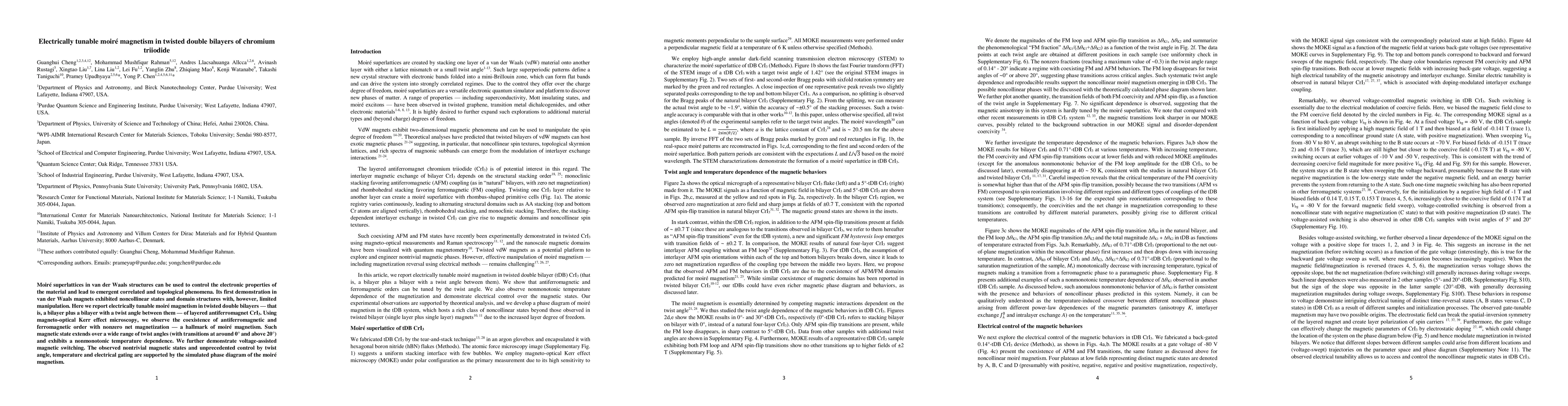 This paper demonstrates electrically tunable moiré magnetism in twisted double bilayer CrI3 antiferromagnets, showcasing coexistence of antiferromagnetic and ferromagnetic orders with tunable net magnetization. The study reveals a rich phase diagram and control via twist angle, temperature, and electrical gating.