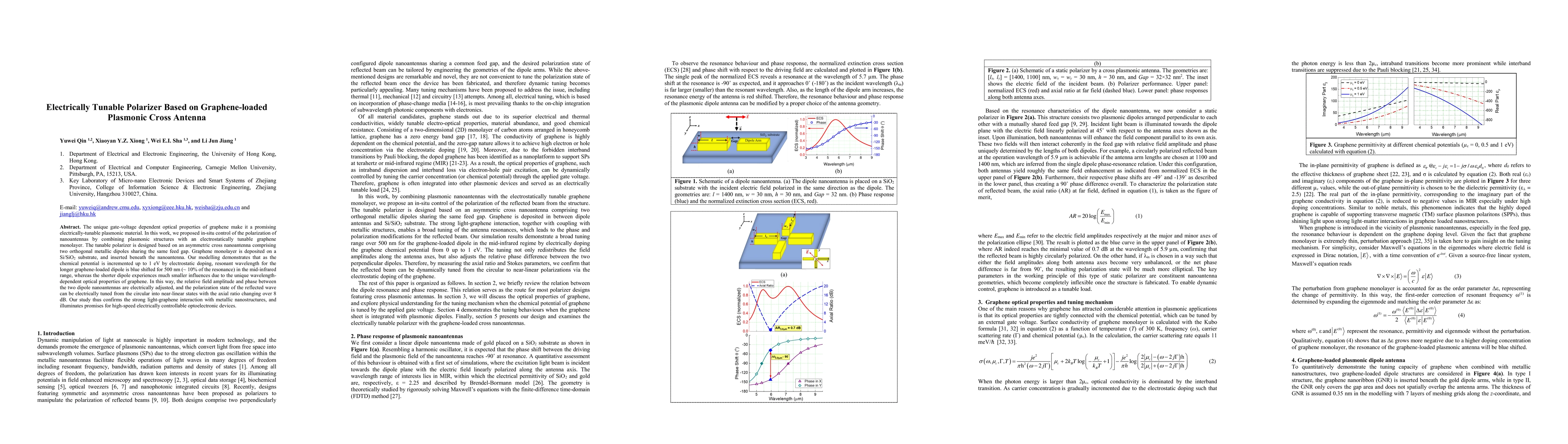 This paper proposes an electrically tunable polarizer utilizing a graphene-loaded plasmonic cross nanoantenna. By electrostatically doping graphene, the polarization state of the reflected wave can be tuned from circular to near-linear, showcasing significant potential for high-speed optoelectronic devices.