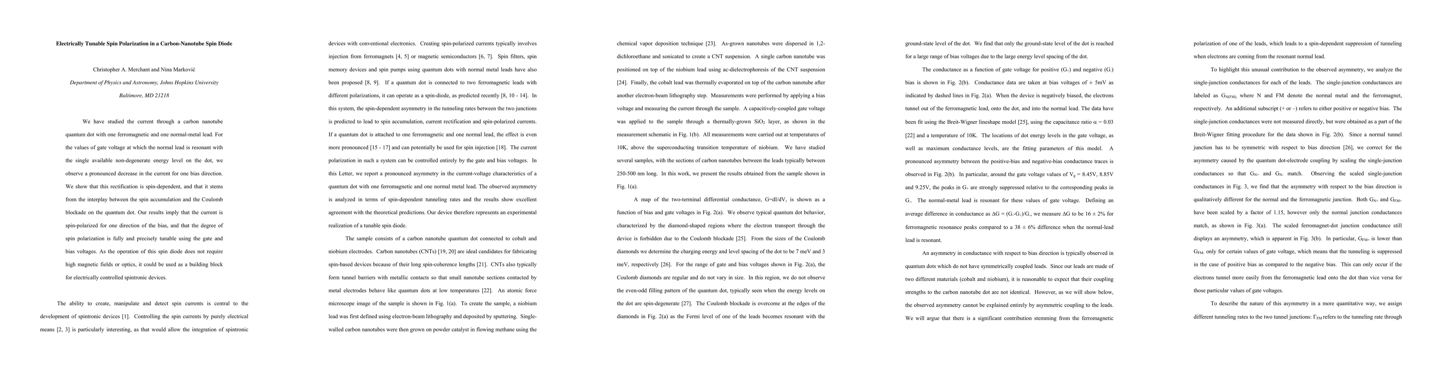 This paper investigates a carbon nanotube spin diode where current rectification is spin-dependent, achieved through spin accumulation and Coulomb blockade, demonstrating full and precise electrical tunability of spin polarization using gate and bias voltages, offering a potential component for electrically controlled spintronic devices.