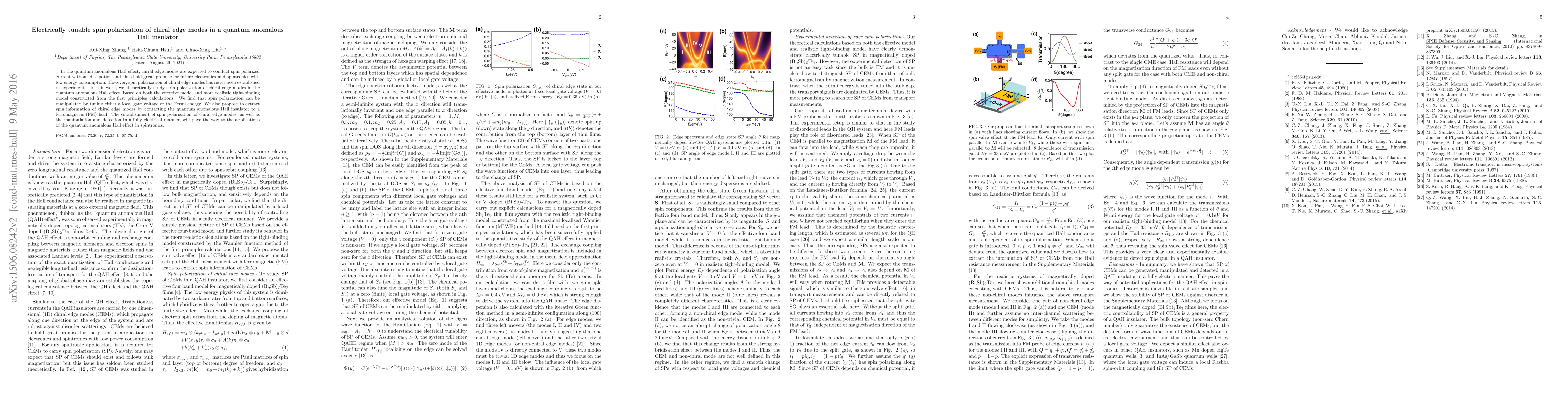 This paper theoretically demonstrates that spin polarization of chiral edge modes in quantum anomalous Hall insulators can be electrically tuned via gate voltage or Fermi energy adjustments. It proposes a method to detect spin polarization by interfacing with a ferromagnetic lead, potentially enabling future low-energy spintronics applications.