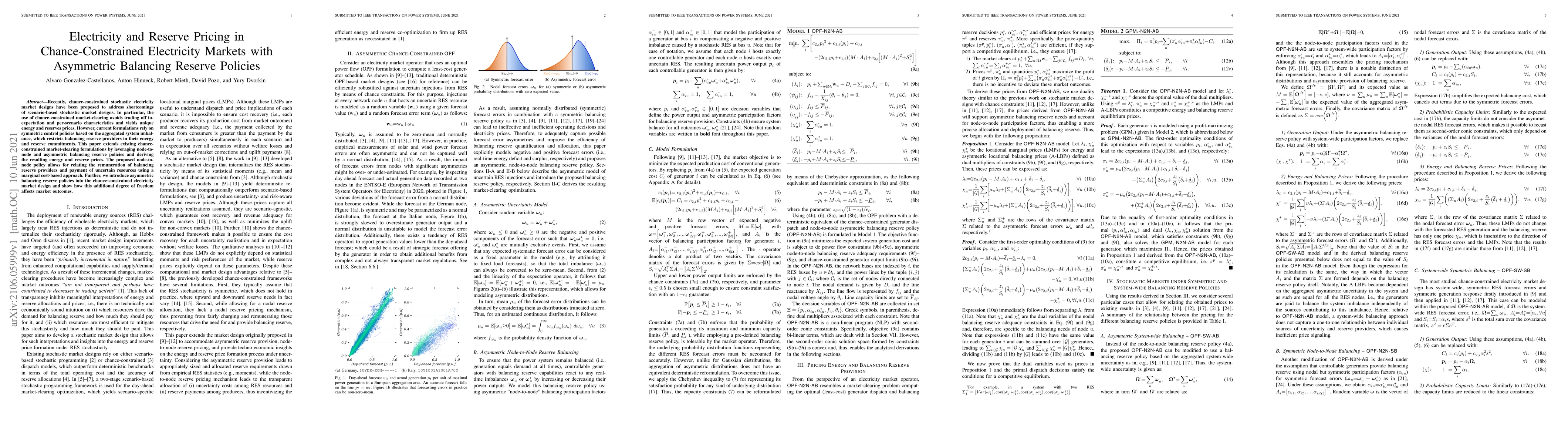 This paper extends chance-constrained stochastic electricity market designs to incorporate asymmetric balancing reserve policies, allowing for node-to-node and marginal cost-based remuneration of balancing reserve providers. It demonstrates how these policies affect energy and reserve pricing in electricity markets.