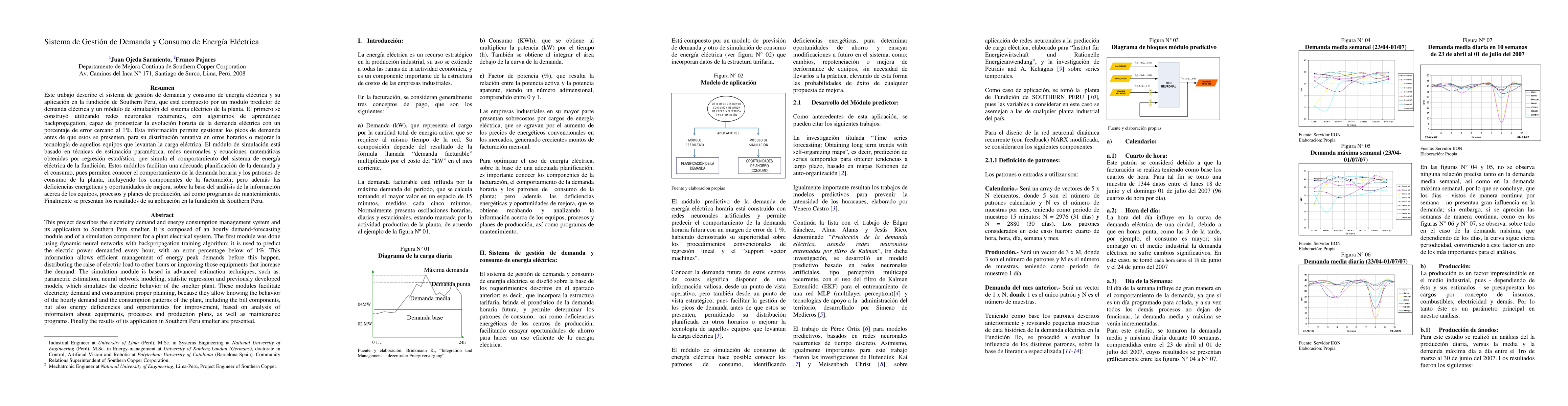 This research develops an electricity demand and consumption management system for Southern Peru smelter, featuring a dynamic neural network module for hourly demand forecasting and a simulation component for plant electrical system behavior. The system aids in efficient energy management and planning by predicting peak demands and identifying opportunities for improvement.