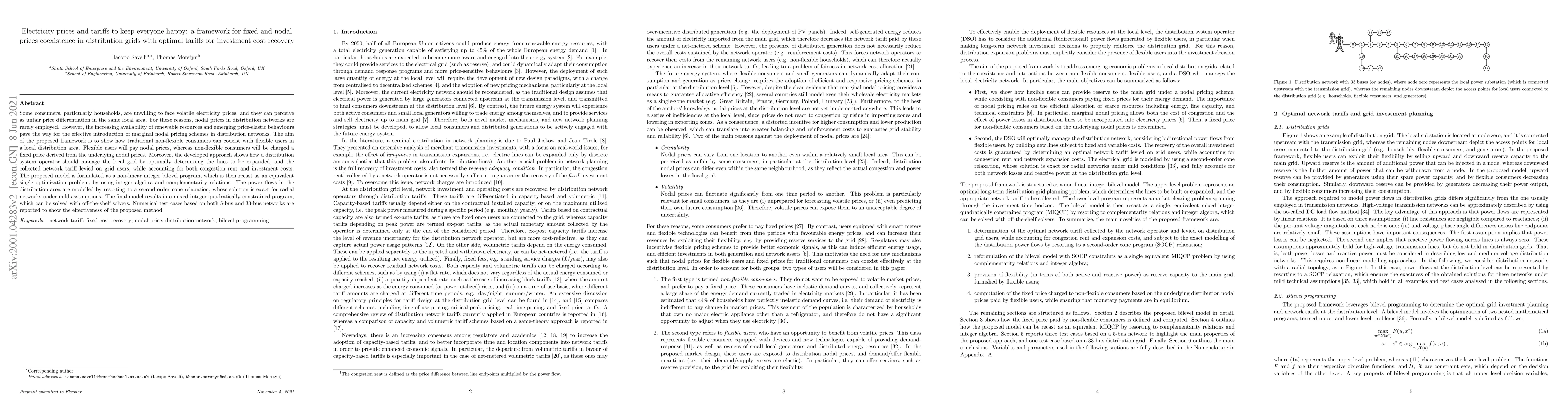 This paper proposes a framework for integrating fixed and nodal electricity pricing in distribution grids, aiming to balance the needs of non-flexible consumers with flexible users. It introduces a model to determine optimal tariffs for investment cost recovery, ensuring fair pricing while managing grid expansion and congestion rent.