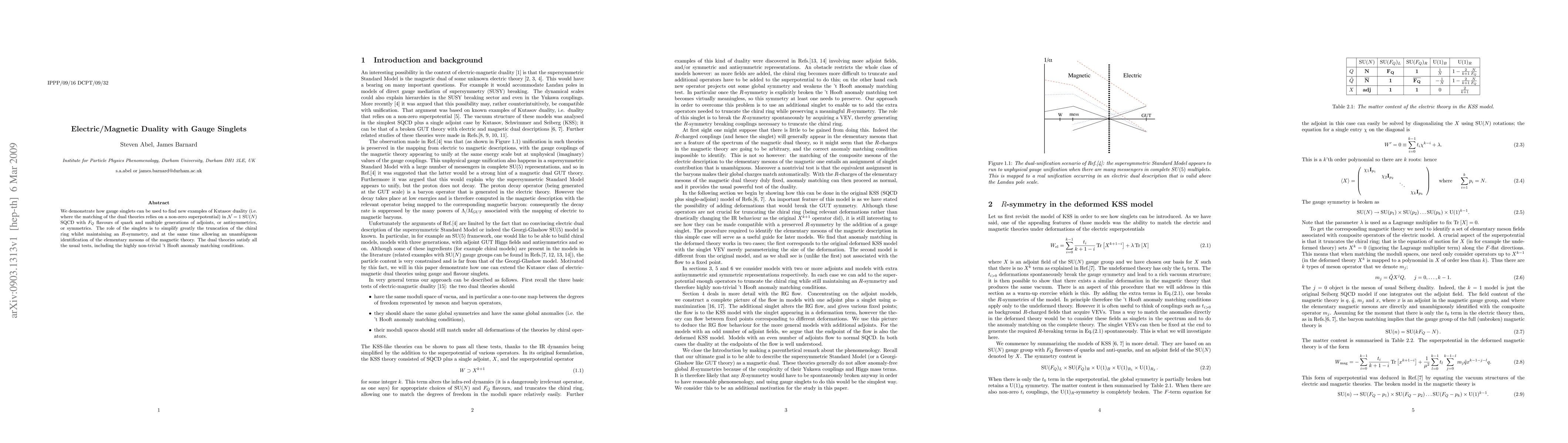 We demonstrate how gauge singlets can be used to find new examples of Kutasov duality (i.e. where the matching of the dual theories relies on a non-zero superpotential) in N}=1 SU(N) SQCD with F_Q flavours of quark and multiple generations of adjoints, or antisymmetrics, or symmetrics. The role of the singlets is to simplify greatly the truncation of the chiral ring whilst maintaining an R-symmetry, and at the same time allowing an unambiguous identification of the elementary mesons of the magnetic theory. The dual theories satisfy all the usual tests, including the highly non-trivial 't Hooft anomaly matching conditions.