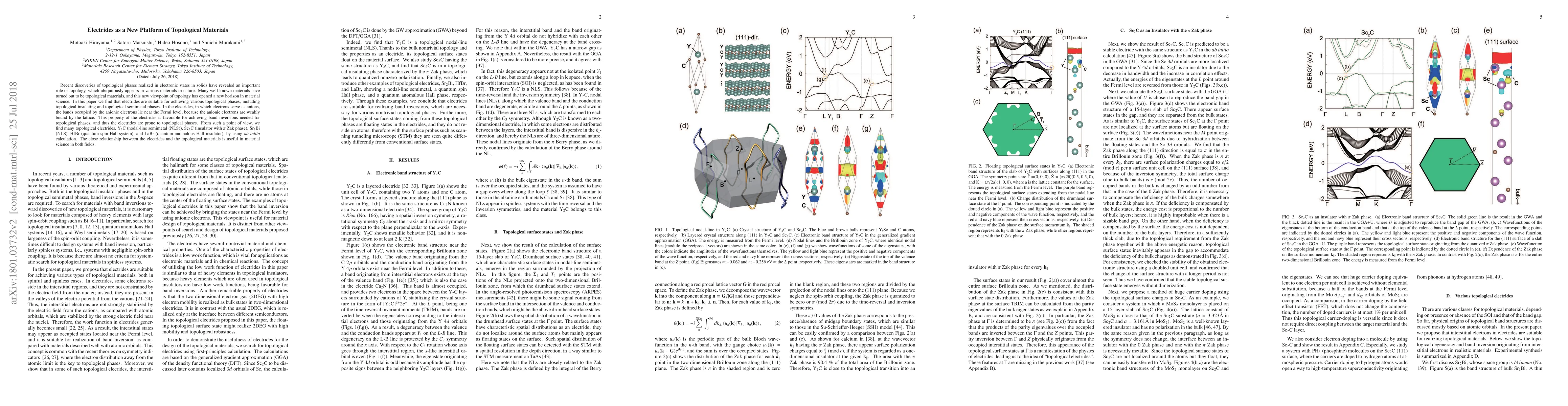 This paper explores electrides as a new platform for topological materials, demonstrating that their unique electronic structure, where electrons act as anions, facilitates the realization of various topological phases. Through ab initio calculations, the authors identify several electrides exhibiting topological properties, highlighting their potential in advancing material science.