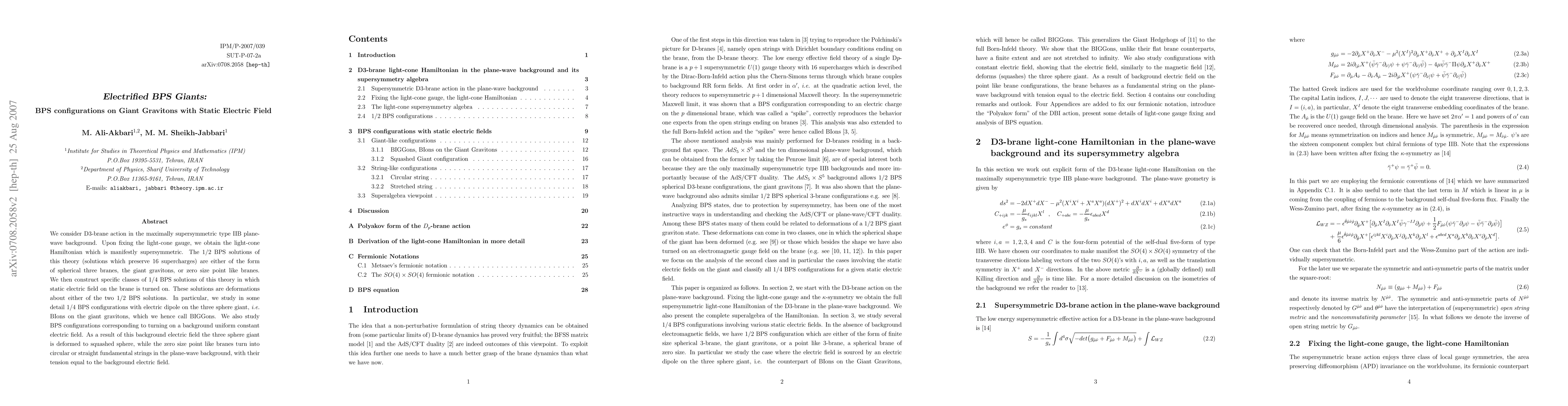 This paper explores D3-brane action in a type IIB plane-wave background, focusing on 1/2 BPS solutions like giant gravitons. It constructs 1/4 BPS configurations with static electric fields, particularly examining electric dipole deformations known as BIGGons, and investigates the deformations caused by a uniform background electric field.