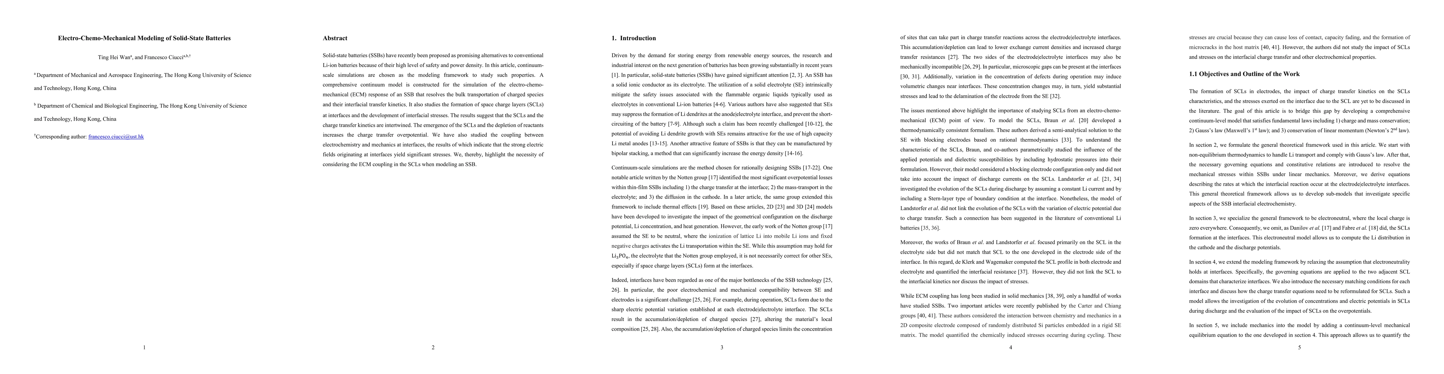 This research employs continuum-scale simulations to model the electro-chemo-mechanical (ECM) response of solid-state batteries (SSBs), focusing on bulk transport, interfacial transfer kinetics, space charge layers (SCLs), and interfacial stresses.