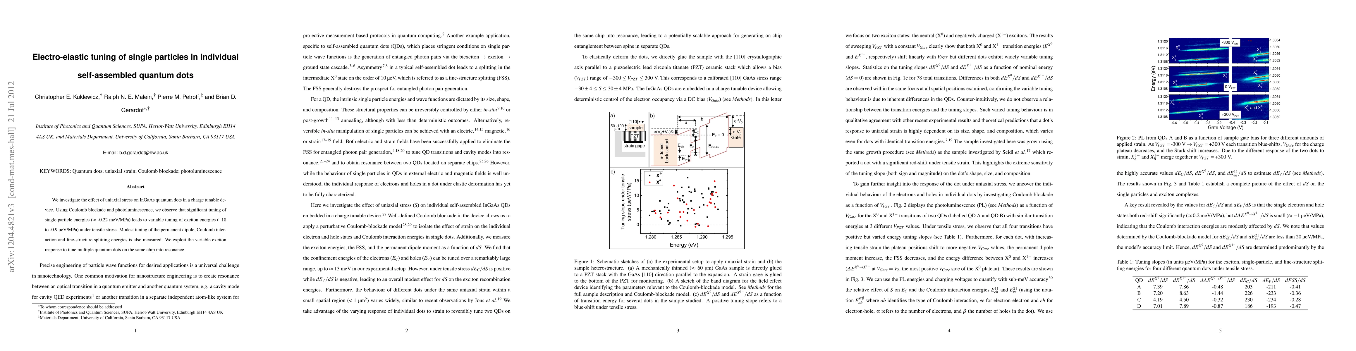 This study explores how uniaxial stress affects InGaAs quantum dots, revealing significant tuning of single-particle and exciton energies via electro-elastic effects. The findings enable precise tuning of multiple quantum dots on a single chip for various applications.