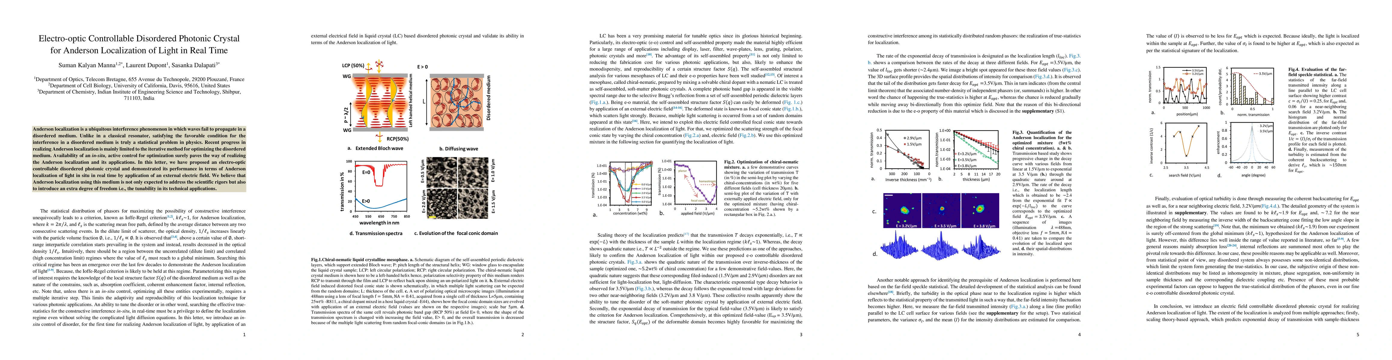 This paper proposes an electro-optic controllable disordered photonic crystal to achieve real-time Anderson localization of light via an external electric field, offering in-situ optimization and tunability for potential technical applications.