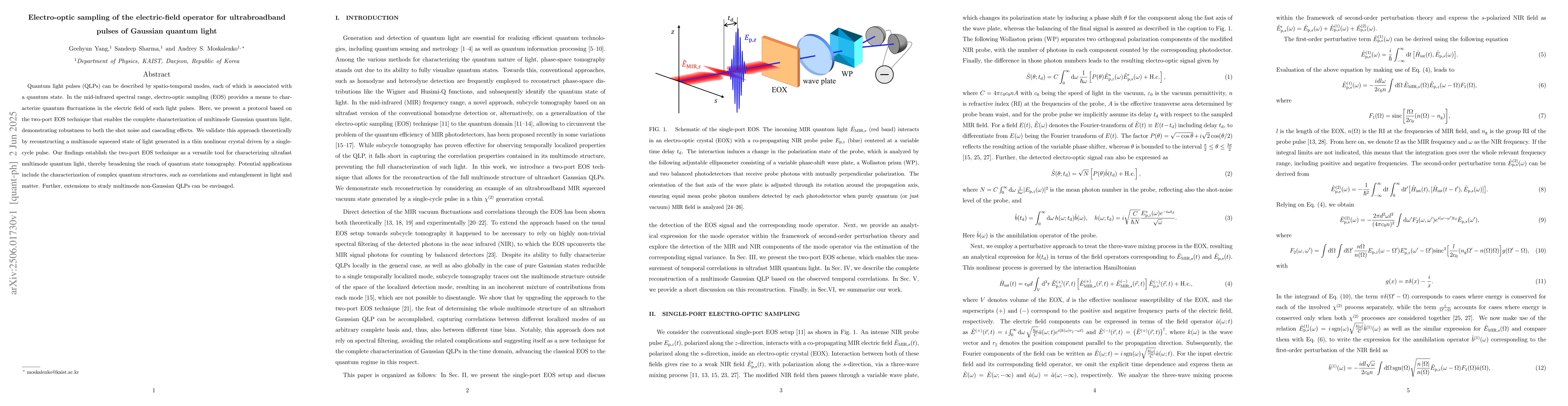 The research employs a two-port electro-optic sampling (EOS) technique for characterizing quantum fluctuations in the electric field of ultrabroadband Gaussian quantum light pulses.