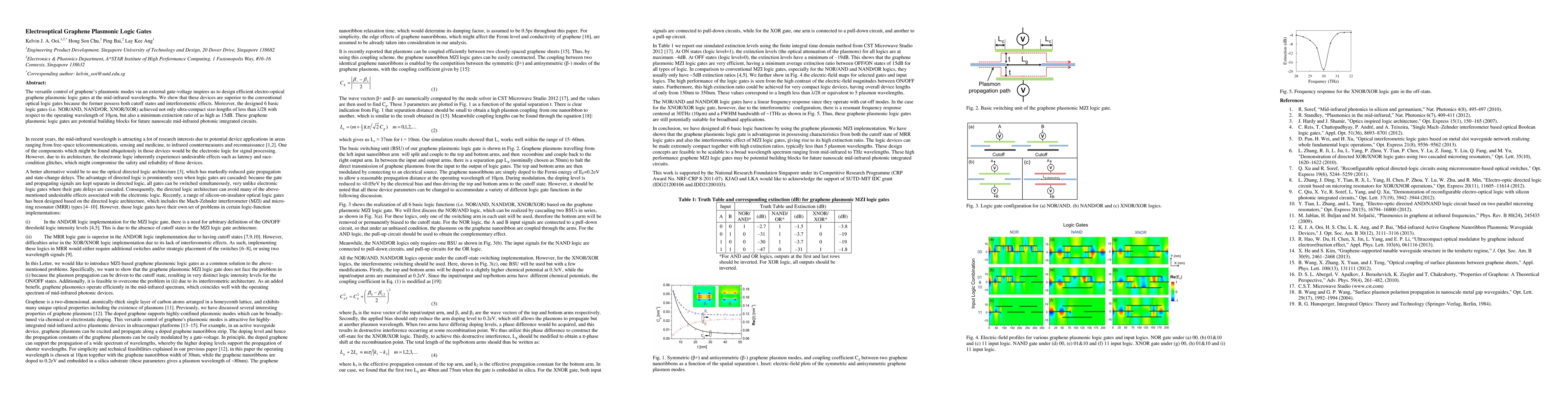 Summary: Researchers demonstrate efficient electro-optical graphene plasmonic logic gates at midinfrared wavelengths, achieving superior performance with ultracompact sizes and high extinction ratios, promising for future nanoscale photonic integrated circuits.