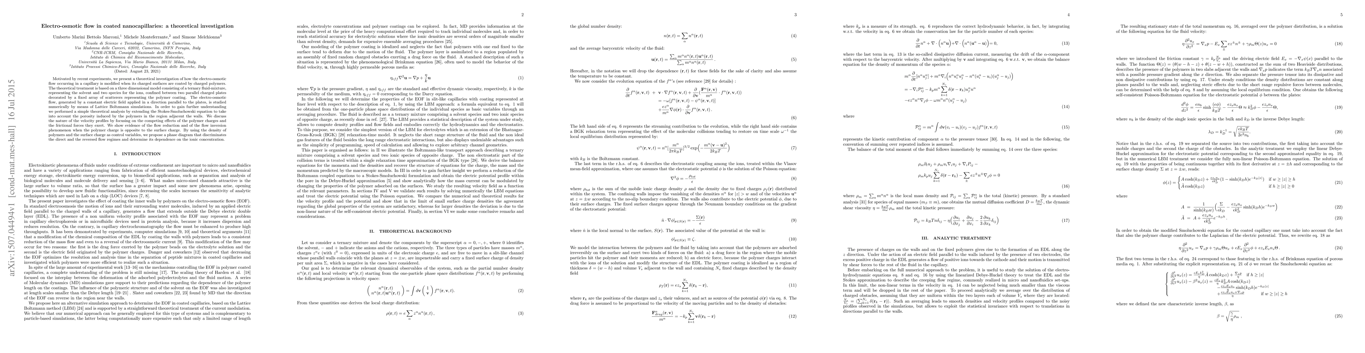 This paper theoretically investigates electro-osmotic flow in coated nanocapillaries using a three-dimensional model and Lattice Boltzmann simulations. It reveals flow reduction and inversion when polymer charges oppose the surface charge, proposing a phase diagram to distinguish flow regimes based on polymer density and surface charge.