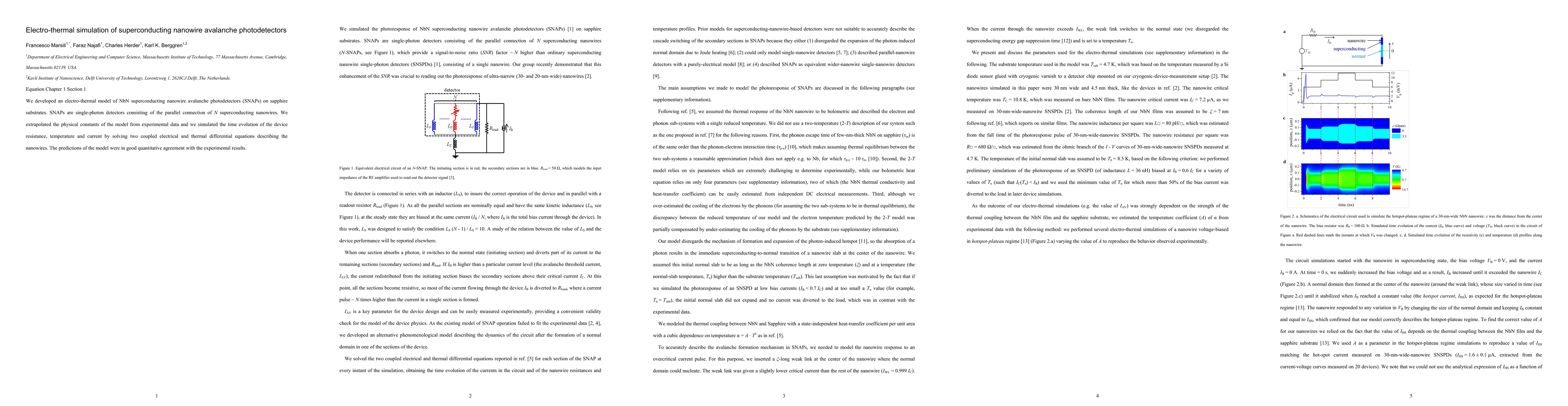 This study develops an electro thermal model for NbN superconducting nanowire avalanche photodetectors (SNAPs) and simulates their resistance, temperature, and current evolution. The model's predictions closely match experimental data, validating its accuracy.