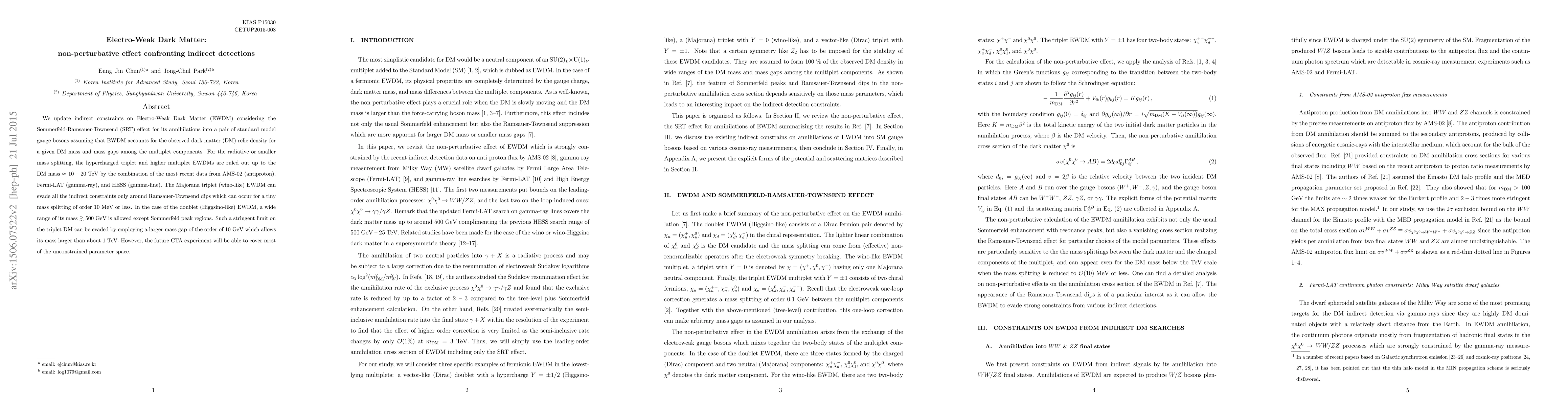 We update indirect constraints on Electro-Weak Dark Matter (EWDM) considering the Sommerfeld-Ramsauer-Townsend (SRT) effect for its annihilations into a pair of standard model gauge bosons assuming that EWDM accounts for the observed dark matter (DM) relic density for a given DM mass and mass gaps among the multiplet components. For the radiative or smaller mass splitting, the hypercharged triplet and higher multiplet EWDMs are ruled out up to the DM mass ~ 10 - 20 TeV by the combination of the most recent data from AMS-02 (antiproton), Fermi-LAT (gamma-ray), and HESS (gamma-line). The Majorana triplet (wino-like) EWDM can evade all the indirect constraints only around Ramsauer-Townsend dips which can occur for a tiny mass splitting of order 10 MeV or less. In the case of the doublet (Higgsino-like) EWDM, a wide range of its mass > 500 GeV is allowed except Sommerfeld peak regions. Such a stringent limit on the triplet DM can be evaded by employing a larger mass gap of the order of 10 GeV which allows its mass larger than about 1 TeV. However, the future CTA experiment will be able to cover most of the unconstrained parameter space.