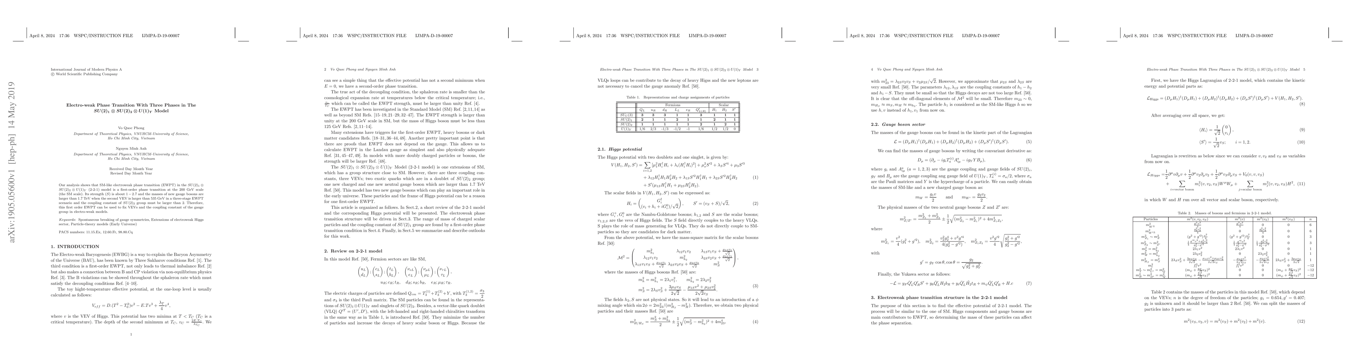 Our analysis shows that SM-like electroweak phase transition (EWPT) in the $SU(2)_1 \otimes SU(2)_2 \otimes U(1)_Y$ (2-2-1) model is a first-order phase transition at the $200$ GeV scale (the SM scale). Its strength ($S$) is about $1 - 2.7$ and the masses of new gauge bosons are larger than $1.7$ TeV when the second VEV is larger than $535$ GeV in a three-stage EWPT scenario and the coupling constant of $SU(2)_2$ group must be larger than 2. Therefore, this first order EWPT can be used to fix VEVs and the coupling constant of the gauge group in electro-weak models.