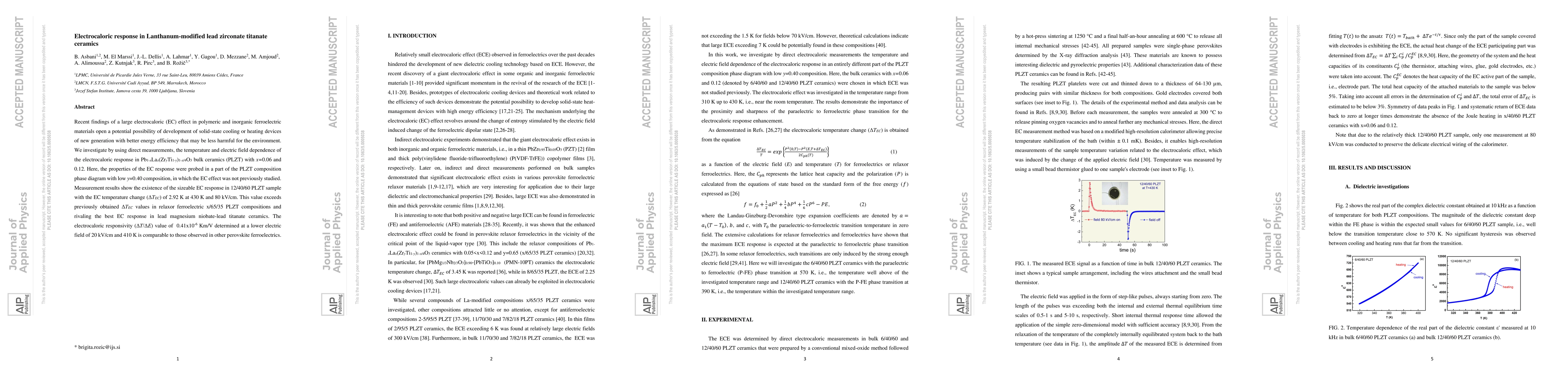 This study investigates the electrocaloric response in Lanthanum-modified lead zirconate titanate (PLZT) ceramics, finding a significant EC effect in the 12/40/60 composition at 430 K and 80 kV/cm, with a temperature change of 2.92 K, surpassing previous EC values in relaxor ferroelectric PLZT compositions and rivaling the best in lead magnesium niobate-lead titanate ceramics. The electrocaloric responsivity is comparable to other perovskite ferroelectrics.