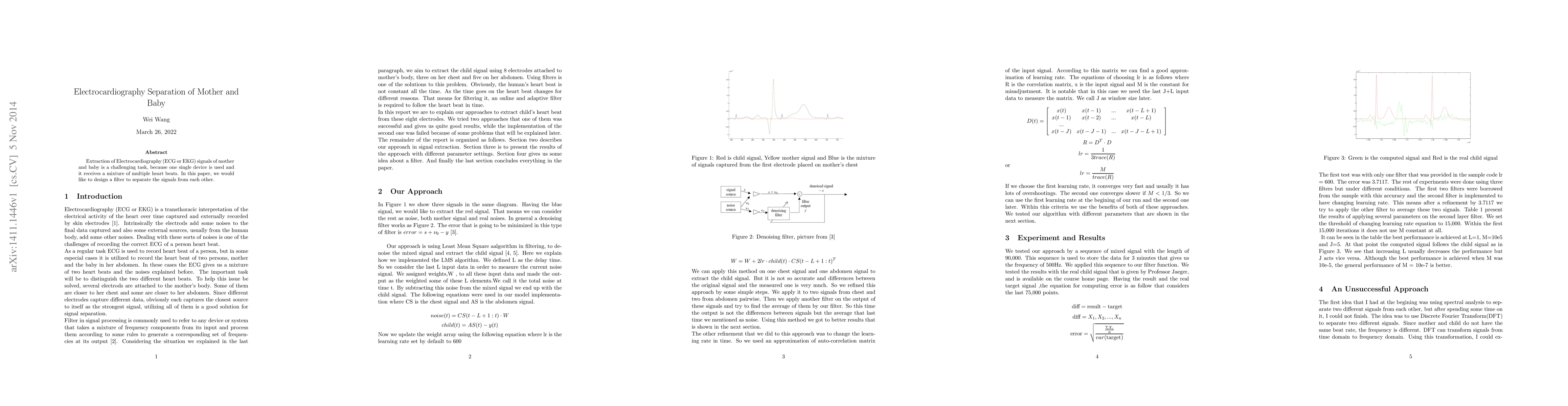 Extraction of Electrocardiography (ECG or EKG) signals of mother and baby is a challenging task, because one single device is used and it receives a mixture of multiple heart beats. In this paper, we would like to design a filter to separate the signals from each other.