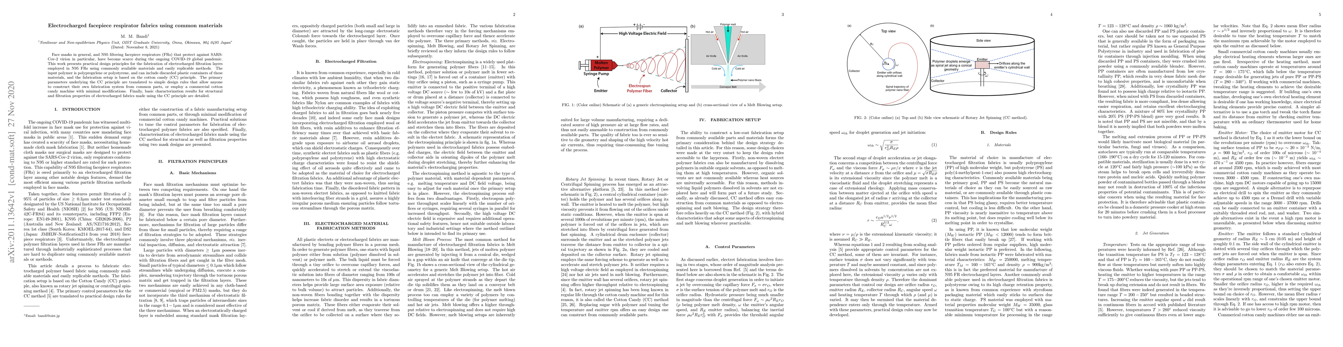 Face masks in general, and N95 filtering facepiece respirators (FRs) that protect against SARS-Cov-2 virion in particular, have become scarce during the ongoing COVID-19 global pandemic. This work presents practical design principles for the fabrication of electrocharged filtration layers employed in N95 FRs using commonly available materials and easily replicable methods. The input polymer is polypropylene or polystyrene, and can include discarded plastic containers of these materials, and the fabrication setup is based on the cotton candy (CC) principle. The primary parameters underlying the CC principle are translated to simple design rules that allow anyone to construct their own fabrication system from common parts, or employ a commercial cotton candy machine with minimal modifications. Finally, basic characterization results for structural and filtration properties of electrocharged fabrics made using the CC principle are detailed.