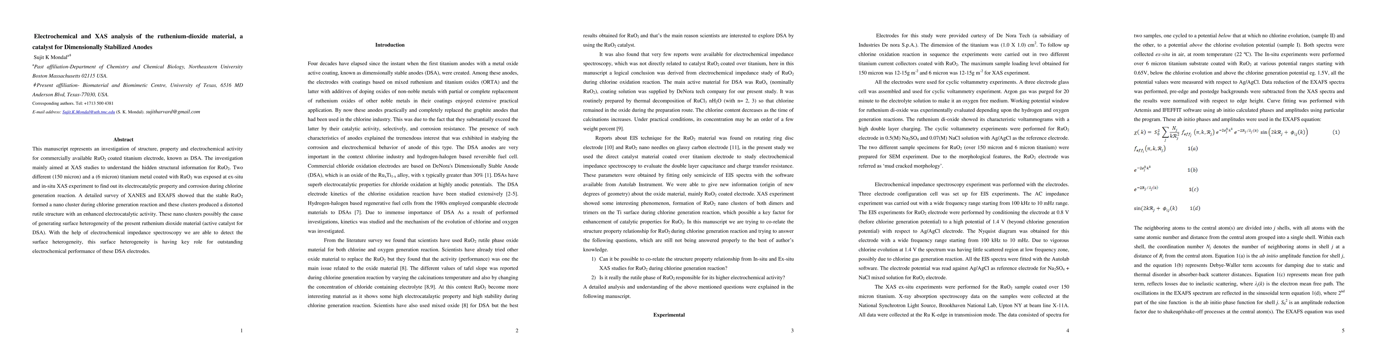 This manuscript represents an investigation of structure, property and electrochemical activity for commercially available RuO2 coated titanium electrode, known as DSA. The investigation mainly aimed at XAS studies to understand the hidden structural information for RuO2. Two different (150 micron) and a (6 micron) titanium metal coated with RuO2 was exposed at ex-situ and in-situ XAS experiment to find out its electrocatalytic property and corrosion during chlorine generation reaction. A detailed survey of XANES and EXAFS showed that the stable RuO2 formed a nano cluster during chlorine generation reaction and these clusters produced a distorted rutile structure with an enhanced electrocatalytic activity. These nano clusters possibly the cause of generating surface heterogeneity of the present ruthenium dioxide material (active catalyst for DSA). With the help of electrochemical impedance spectroscopy we are able to detect the surface heterogeneity, this surface heterogeneity is having key role for outstanding electrochemical performance of these DSA electrodes.
