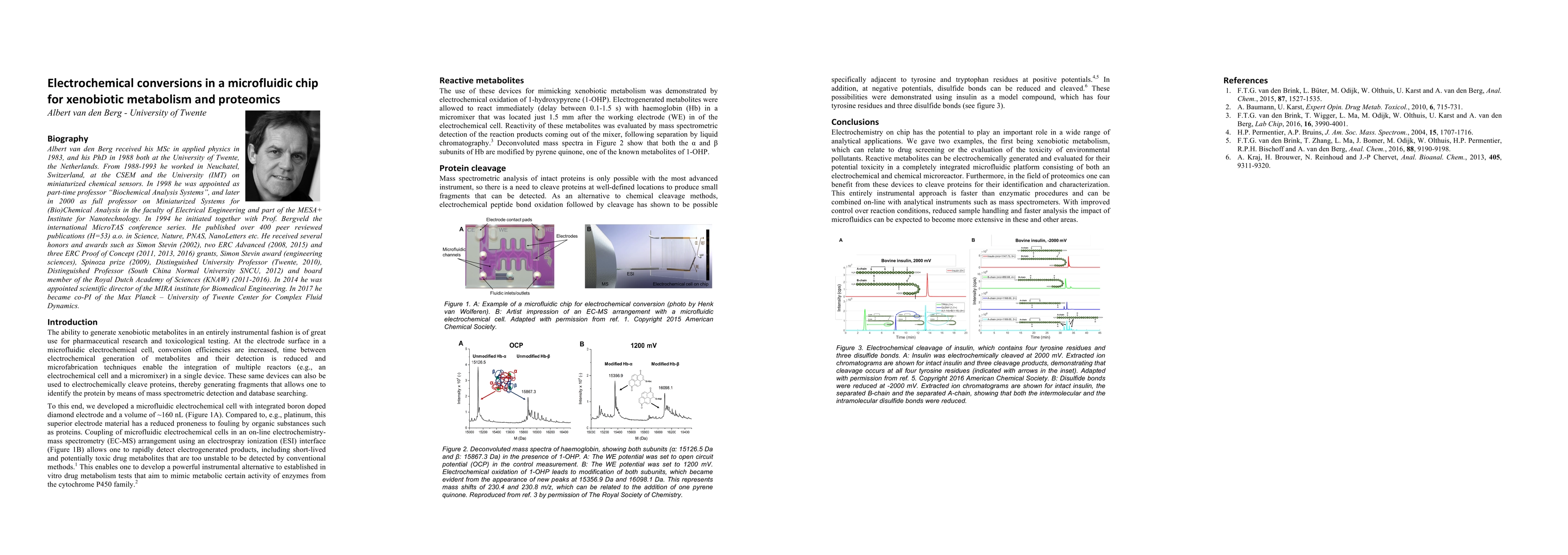 Albert van den Berg is a full professor on Miniaturized Systems for (Bio)Chemical Analysis at at the University of Twente. In this contribution he describes how microfluidic techniques can be used to mimic xenobiotic metabolism in vitro. Similar devices can also be used to electrochemically cleave proteins for mass spectrometric detection and database searching.