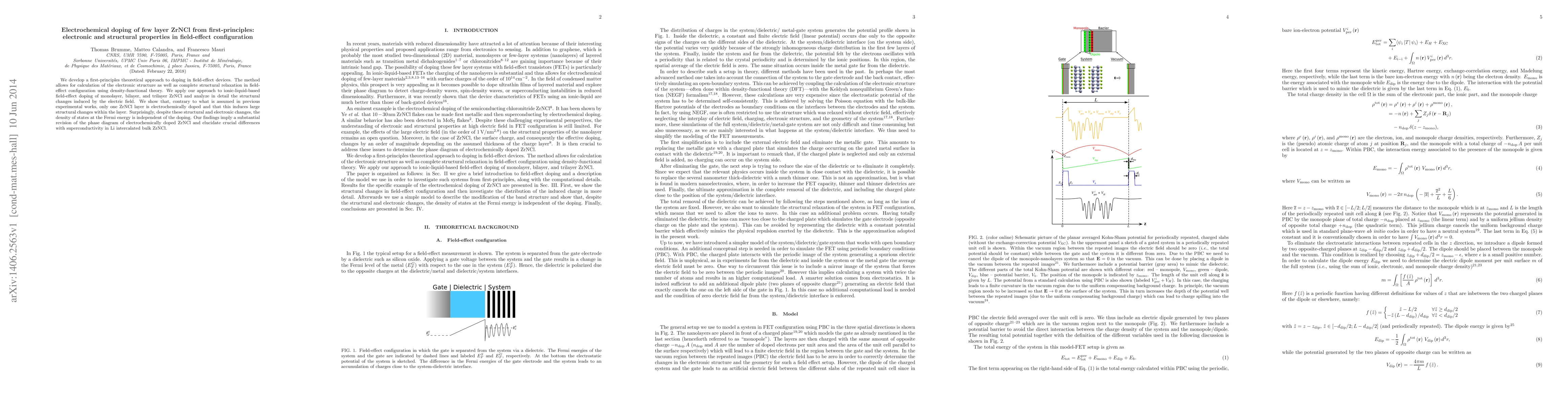 We develop a first-principles theoretical approach to doping in field-effect devices. The method allows for calculation of the electronic structure as well as complete structural relaxation in field-effect configuration using density-functional theory. We apply our approach to ionic-liquid-based field-effect doping of monolayer, bilayer, and trilayer ZrNCl and analyze in detail the structural changes induced by the electric field. We show that, contrary to what is assumed in previous experimental works, only one ZrNCl layer is electrochemically doped and that this induces large structural changes within the layer. Surprisingly, despite these structural and electronic changes, the density of states at the Fermi energy is independent of the doping. Our findings imply a substantial revision of the phase diagram of electrochemically doped ZrNCl and elucidate crucial differences with superconductivity in Li intercalated bulk ZrNCl.