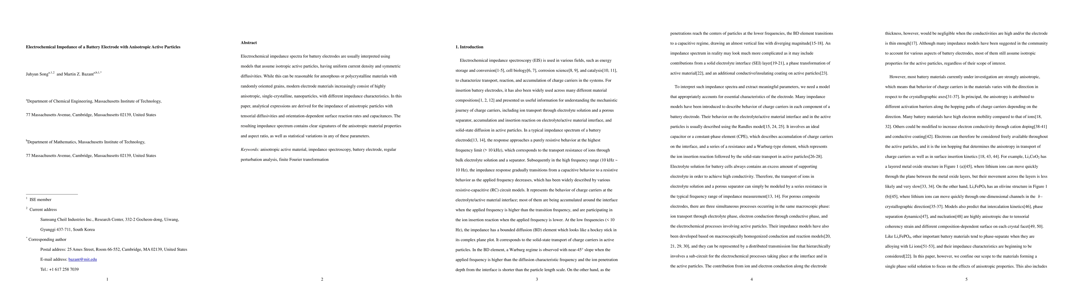 This paper derives analytical expressions for the electrochemical impedance of battery electrodes with anisotropic, single-crystalline nanoparticles, revealing distinct signatures of material properties and aspect ratios in the impedance spectrum. It challenges traditional models that assume isotropic particles.