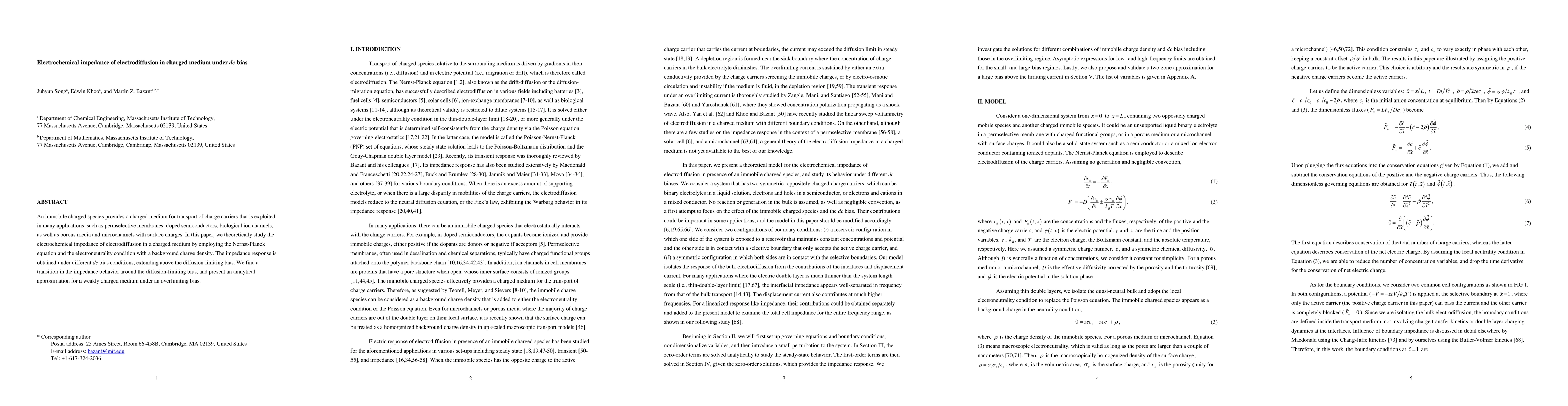An immobile charged species provides a charged medium for transport of charge carriers that is exploited in many applications, such as permselective membranes, doped semiconductors, biological ion channels, as well as porous media and microchannels with surface charges. In this paper, we theoretically study the electrochemical impedance of electrodiffusion in a charged medium by employing the Nernst-Planck equation and the electroneutrality condition with a background charge density. The impedance response is obtained under different dc bias conditions, extending above the diffusion-limiting bias. We find a transition in the impedance behavior around the diffusion-limiting bias, and present an analytical approximation for a weakly charged medium under an overlimiting bias.