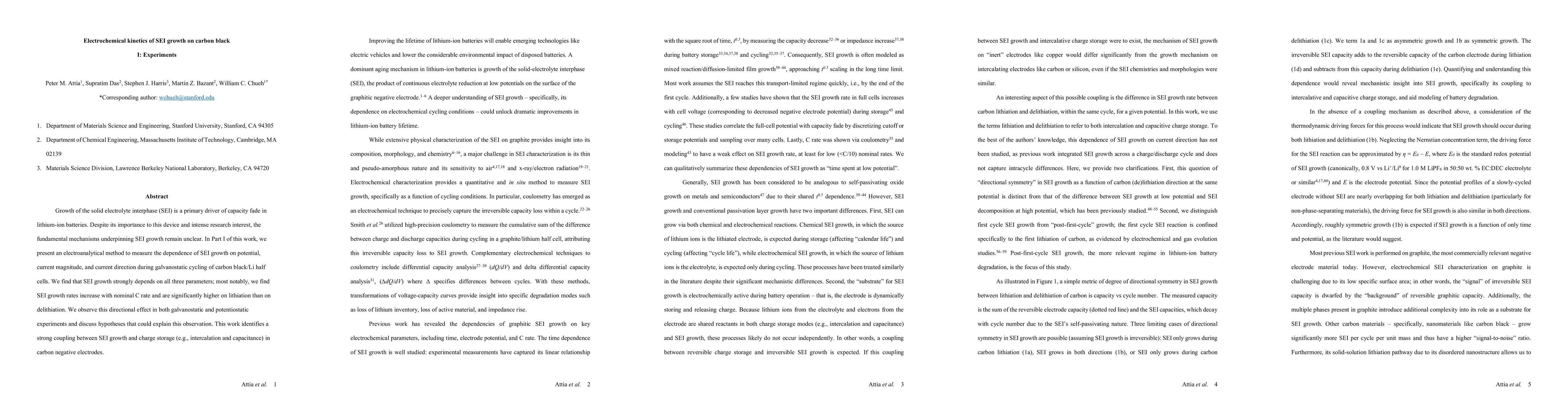 This study introduces an electroanalytical method to measure SEI growth on carbon black in lithium-ion batteries, revealing that SEI growth rates increase with higher C rates and are significantly greater during lithiation compared to delithiation. The findings suggest a strong link between SEI growth and charge storage mechanisms in carbon electrodes.
