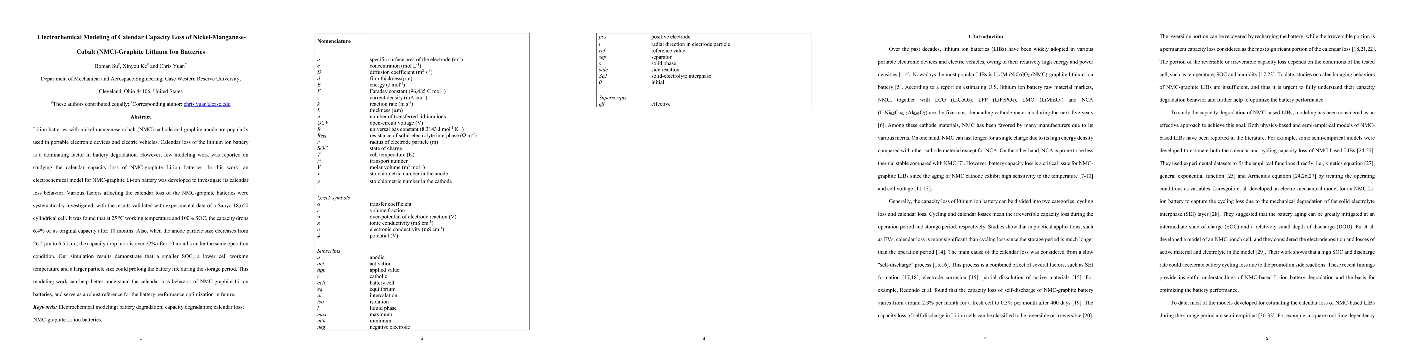 This paper develops an electrochemical model to investigate the calendar capacity loss of NMC-graphite lithium-ion batteries, finding that factors like lower SOC, lower temperature, and larger anode particle size prolong battery life. Experimental validation shows a 6.4% capacity drop over 10 months at 25°C and 100% SOC, with smaller anode particles exacerbating the loss.
