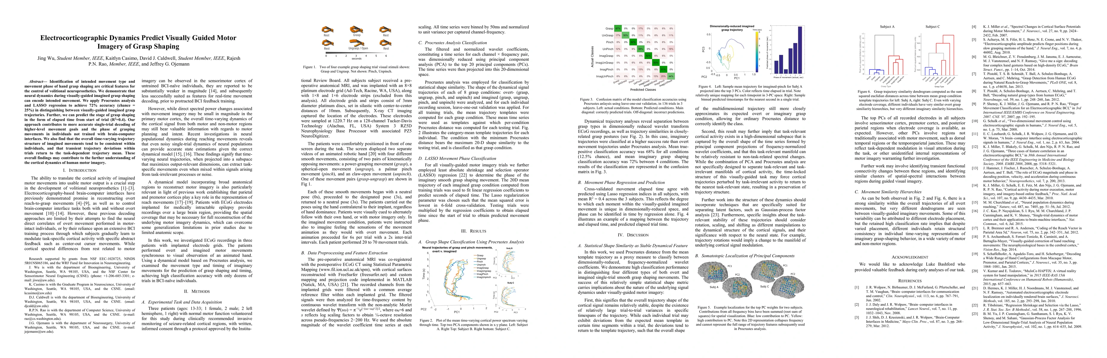 Researchers used electrocorticography to decode visually guided motor imagery of hand grasp shaping with 72% accuracy, predicting movement stages and phases. This study contributes to better single-trial decoding of higher-level movement goals and understanding of cortical dynamics.