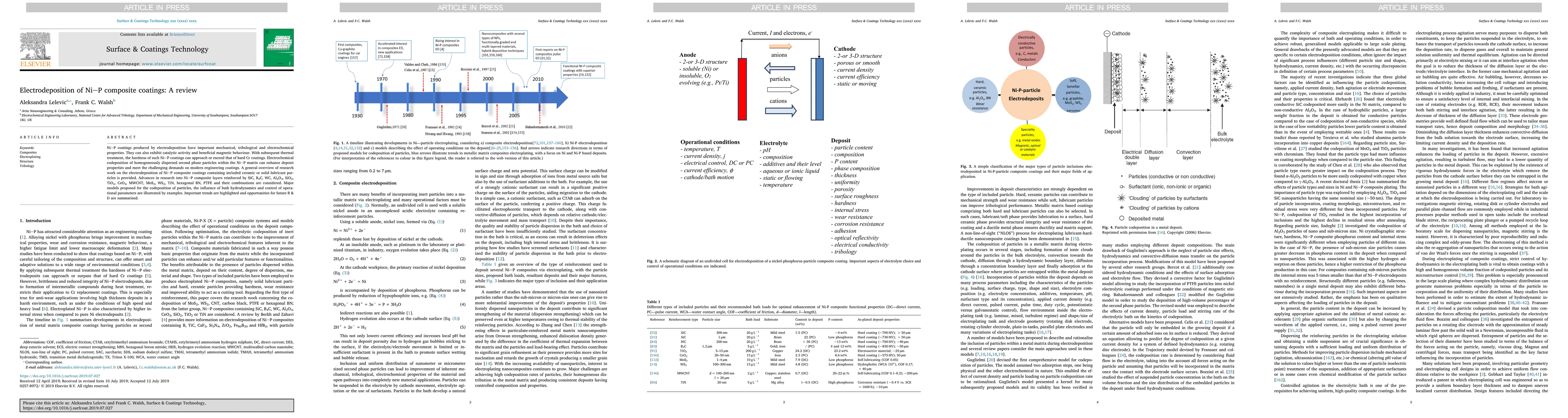This paper reviews the electrodeposition of Ni-P composite coatings, emphasizing their enhanced mechanical, tribological, and electrochemical properties through the addition of various second phase particles. It highlights advances in research on composite layers reinforced with materials like SiC, Al2O3, and MWCNT, and discusses models for particle codeposition and operational parameters.