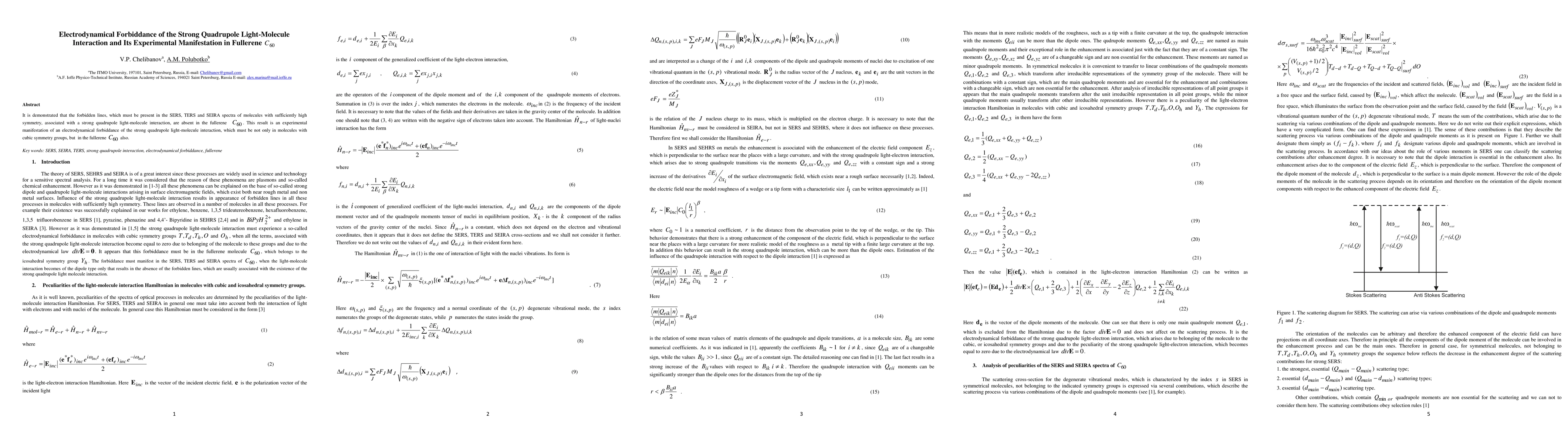 It is demonstrated that the forbidden lines, which must be present in the SERS, TERS and SEIRA spectra of molecules with sufficiently high symmetry, associated with a strong quadrupole light-molecule interaction, are absent in the fullerene C60. This result is an experimental manifestation of an electrodynamical forbiddance of the strong quadrupole light-molecule interaction, which must be not only in molecules with cubic symmetry groups, but in the fullerene C60 also.