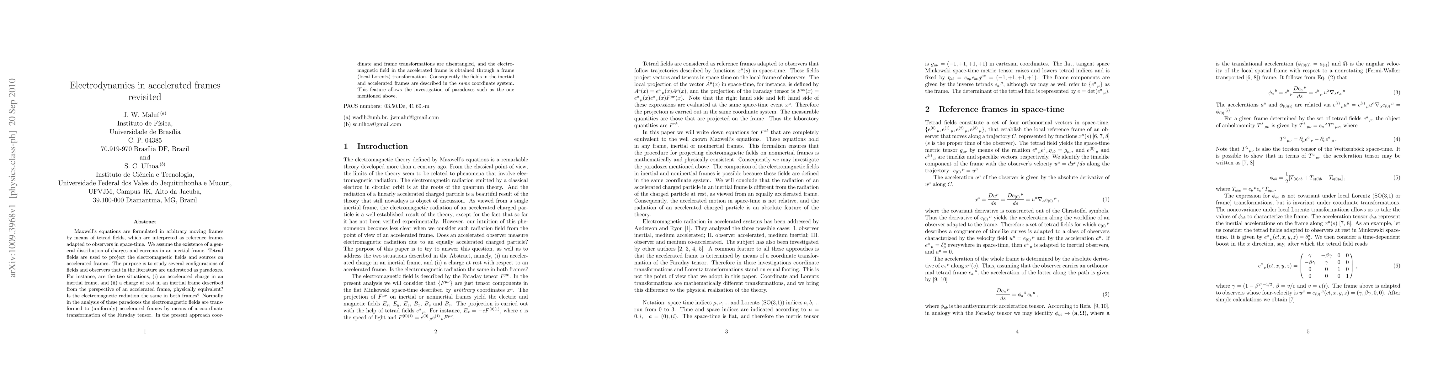 This paper reformulates Maxwell's equations in accelerated frames using tetrad fields to project electromagnetic fields and sources, disentangling coordinate and frame transformations. It investigates whether configurations like an accelerated charge in an inertial frame and a charge at rest viewed from an accelerated frame are physically equivalent, addressing paradoxes in electrodynamics.