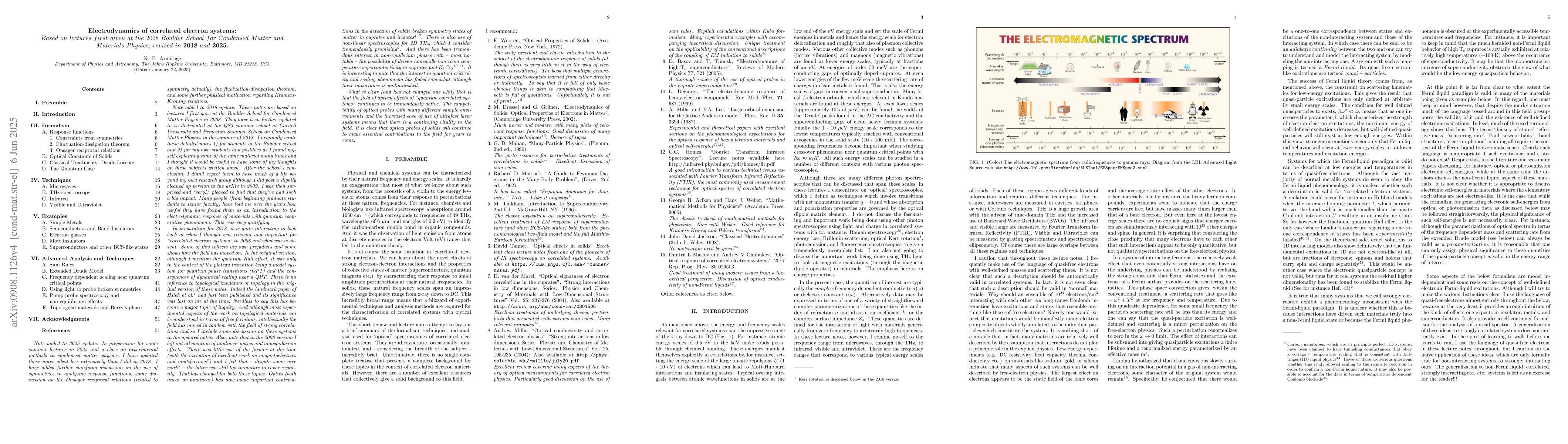 Research on correlated electron systems focuses on understanding their response to small amplitude perturbations at their natural frequencies, which can reveal novel effects of strong electron-electron interactions and collective states of matter. The study aims to summarize formalism, techniques, and analysis methods for optical spectroscopies of these systems.