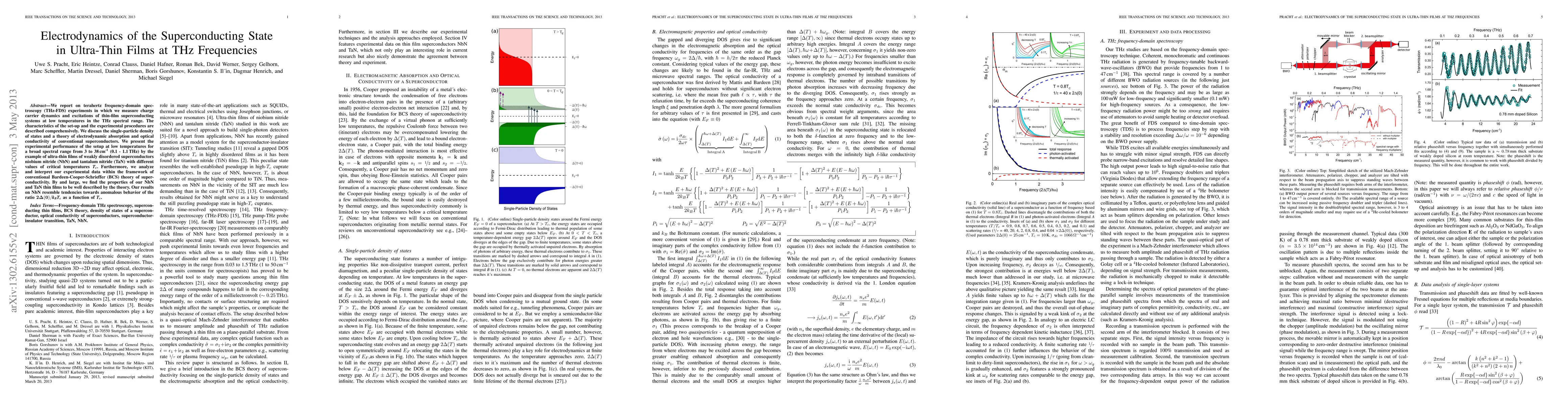 This paper reports on terahertz frequency-domain spectroscopy experiments measuring charge carrier dynamics in ultra-thin superconducting films of niobium nitride and tantalum nitride at low temperatures. The study analyzes electrodynamic absorption and optical conductivity within the BCS theory framework.