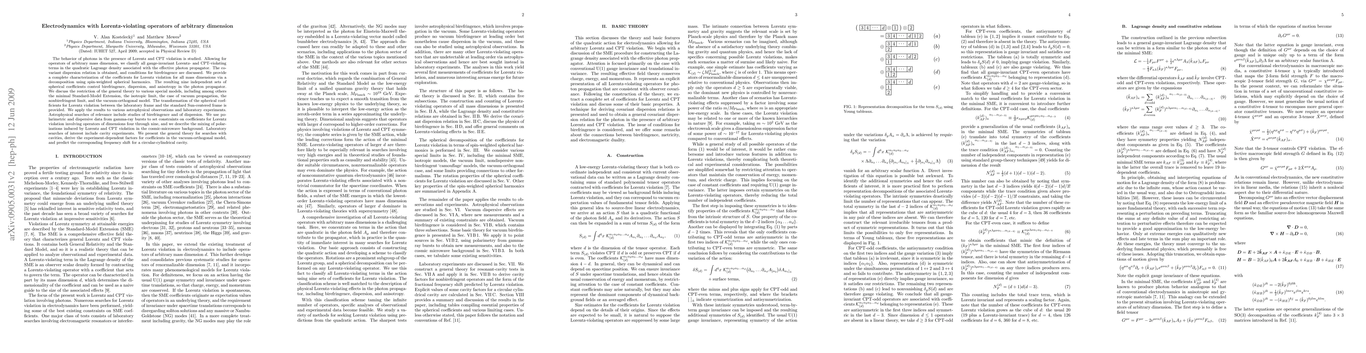 This paper classifies gauge-invariant Lorentz- and CPT-violating terms in the photon's quadratic Lagrange density, deriving a covariant dispersion relation and identifying nine independent spherical coefficients controlling birefringence, dispersion, and anisotropy. It applies these results to astrophysical and laboratory searches, setting constraints on Lorentz violation coefficients and predicting frequency shifts for cavity experiments.
