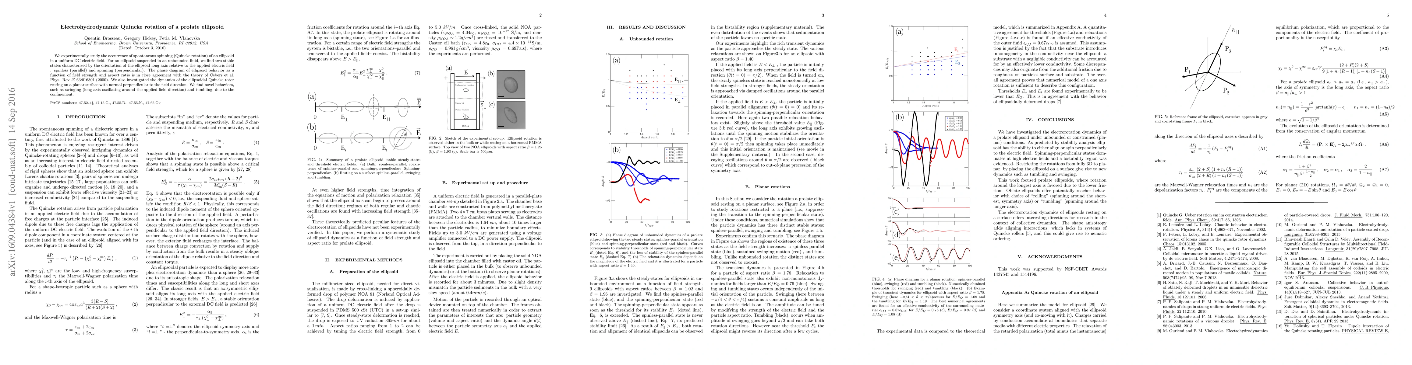 Researchers studied how a prolate ellipsoid spins in a uniform DC electric field, finding two stable states and new behaviors when confined to a surface.
