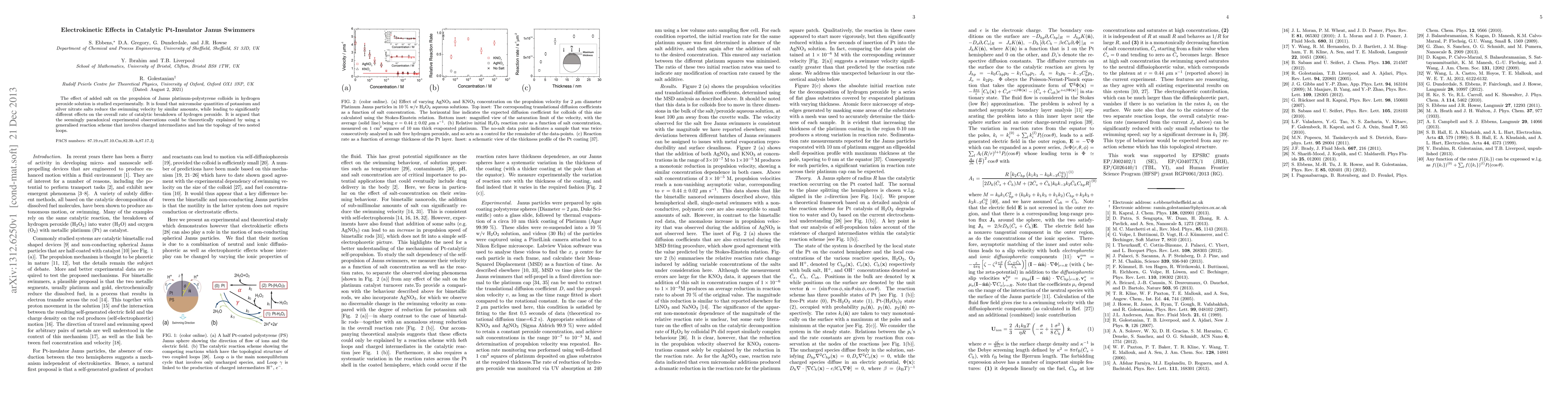 The effect of added salt on the propulsion of Janus platinum-polystyrene colloids in hydrogen peroxide solution is studied experimentally. It is found that micromolar quantities of potassium and silver nitrate salts reduce the swimming velocity by similar amounts, while leading to significantly different effects on the overall rate of catalytic breakdown of hydrogen peroxide. It is argued that the seemingly paradoxical experimental observations could be theoretically explained by using a generalised reaction scheme that involves charged intermediates and has the topology of two nested loops.