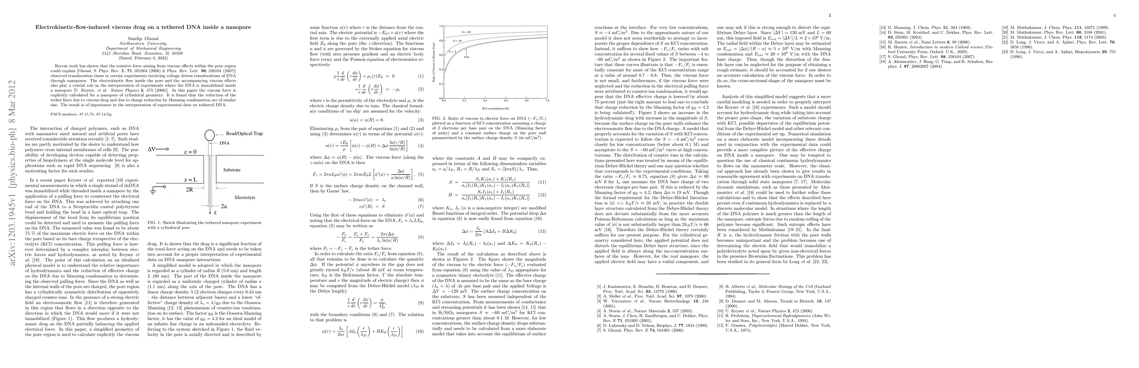 This paper calculates the viscous drag force due to electrokinetic flow within a cylindrical nanopore on a tethered DNA, finding that it significantly reduces the tether force, comparable to charge reduction effects, which is crucial for interpreting experimental data on tethered DNA.