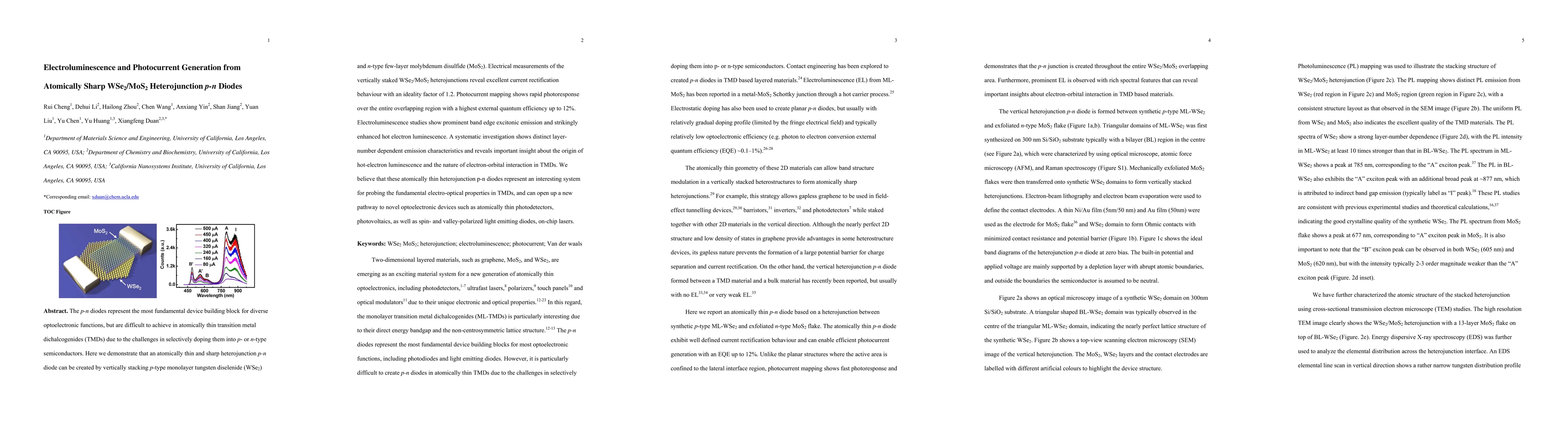 This paper demonstrates the first atomically sharp heterojunction p-n diode using stacked WSe2 and MoS2, showing excellent electrical characteristics and high photocurrent efficiency. The study reveals insights into excitonic and hot electron luminescence, suggesting potential for advanced optoelectronic applications.